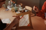 2. 工作坊当日,用多种色彩绘制和染制您选择的图案,同时与艺术家本人轻松聊天!