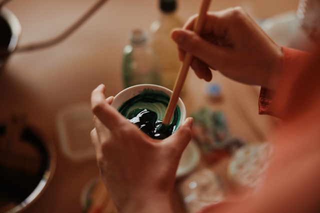② On the date, paint and dye the design you picked with various colors, while enjoying a chat with the artist herself!