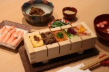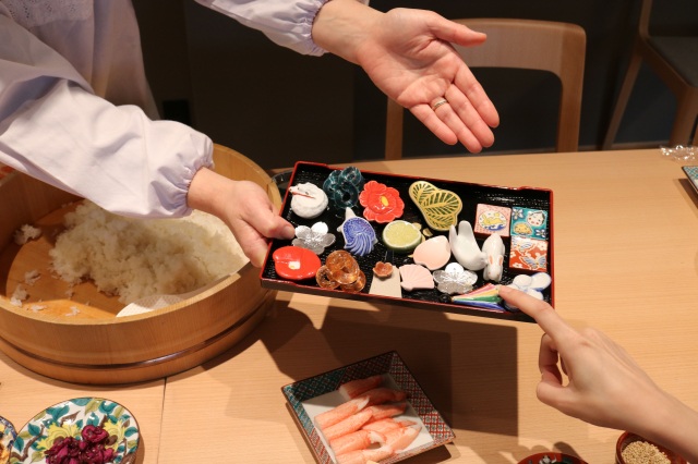 Sasa-zushi is a traditional Kanazawa favorite, still prepared to celebrate special occasions at home. Every home cook has their own personal twist on the recipe, as these living traditions continue to evolve. The family prepares it all together as a group: first, line a press molds with a layer of sushi rice, add your own choice of toppings, then press, slice, and wrap each individual piece in a bamboo leaf.