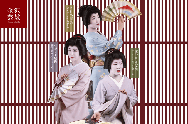 金沢には「ひがし」「にし」「主計町(かずえまち)」の3つの茶屋街があり、約40名の芸妓(げいぎ)が伝統のおもてなしの文化を継承しています。 金沢のお茶屋さんは、本来、一見さんお断りですが、金沢市ではお茶屋文化の継承を目的に どなたでも参加できる特別な体験プランを行っています。
