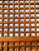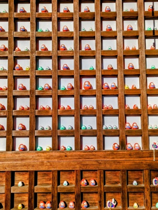During the Edo period, the shrine was deeply revered by the Maeda lords of the Kaga Domain, who prayed here for protection against fire and for healing from illness. It is also known as the birthplace of the traditional local doll Kaga Hachiman Okiagari, which represents resilience and good fortune. The doll’s design—featuring a red baby kimono—symbolizes the legend of the Hachiman deity being born wearing deep crimson garments.