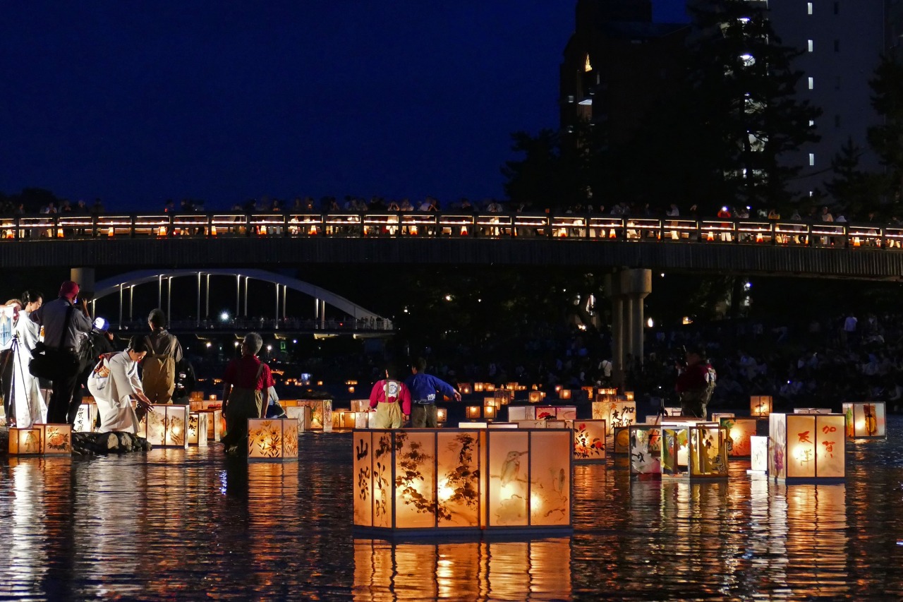 About 600 Kaga Yuzen Lanterns, unique to a castle town of one million stone, will flow down the clear stream of the Asano River, creating a rich emotional atmosphere. The venue is close to Higashi Chaya-gai, and anyone is welcome to view the lanterns. The event is held on the eve of the main event of the “Hyakumangoku Festival” so please come and enjoy it as well.