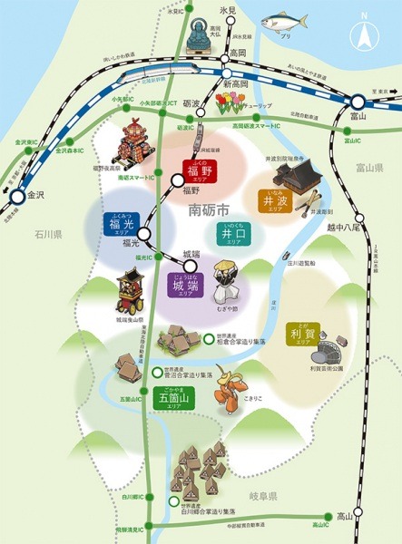 Nanto City in Toyama Prefecture has deep and beautiful mountains and a countryside enriched by the Shogawa and Oyabe Rivers. Muneyoshi YANAGI, the founder of the Mingei (folk art) movement, found the “earthly virtues” in the unique strengths of the Nanto region, such as the culture and lifestyle nurtured in this region where the Buddism "Jodo Shinshu" sect has been deeply rooted for a long time. Gokayama, known for its gassho-Style villages, is truly a “living World Heritage site” where people live with their own unique culture. The “Sankyo (scattered) villages” spread across the countryside are another special landscape unique to this region. From medieval to modern times, Johana flourished with silk fabrics, and Inami, known for its wood carvings, has a rich history and culture. Fukumitsu, where Shiko MUNAKATA lived, Fukuno, flourished as a market town, Iguchi, the home of camellias, and Toga, a theater and city exchange, the satoyama of Nanto is always full of travel charm and people will welcome you with a warm smile. Why not spend such special travel days in Nanto?