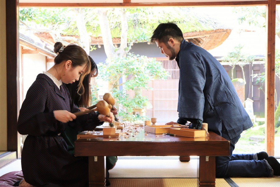 Experience the skills of Inami's wood carvers at "Kurokami-an", a small hermitage in Inami, the best town for wood carving in Japan. Under the guidance of a craftsman, you can make your own unique "Guinomi" sake cup with chisels, hammers, and other authentic tools. After the experience, you can enjoy sake tasting at a local sake brewery. You can enjoy the unique aroma and taste of Hinoki "Guinomi".