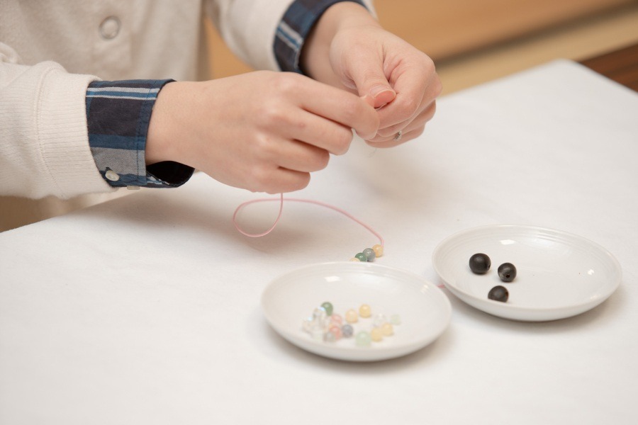 Making bracelet prayer beads at Johana Betsuin Zentokuji Temple