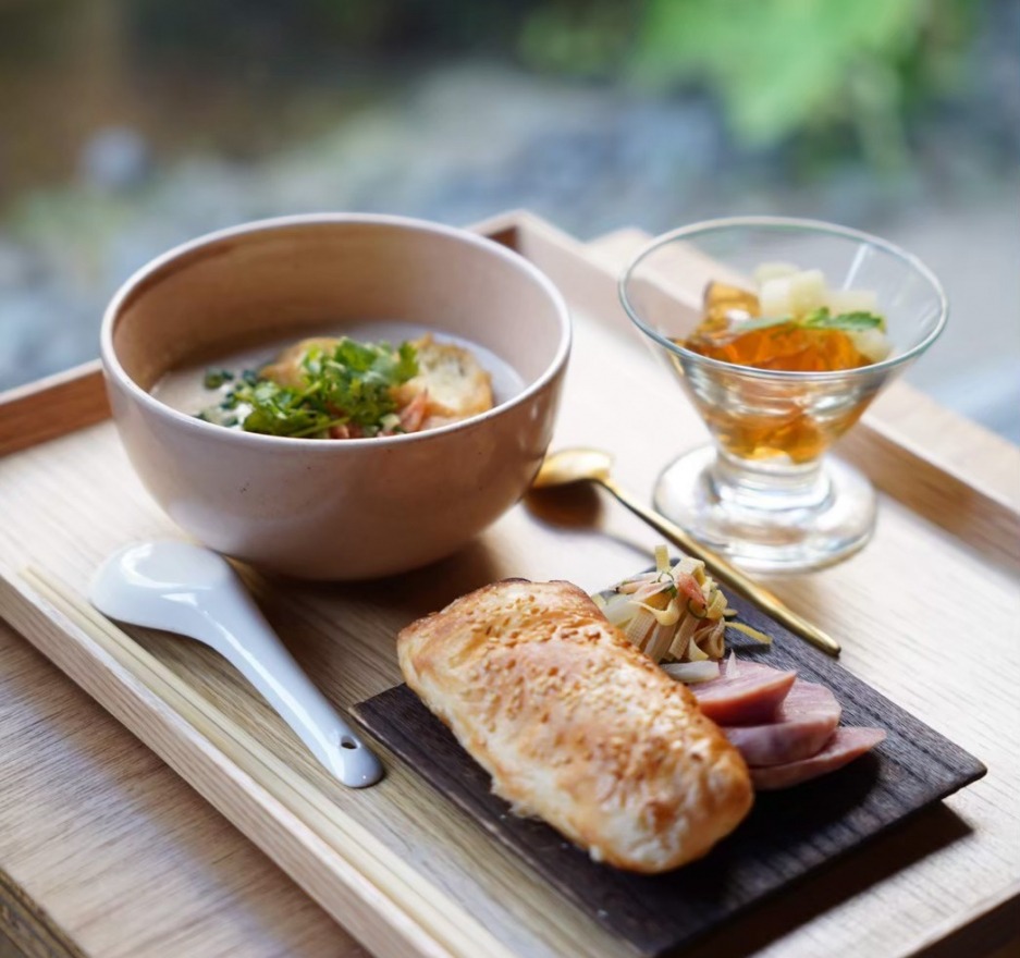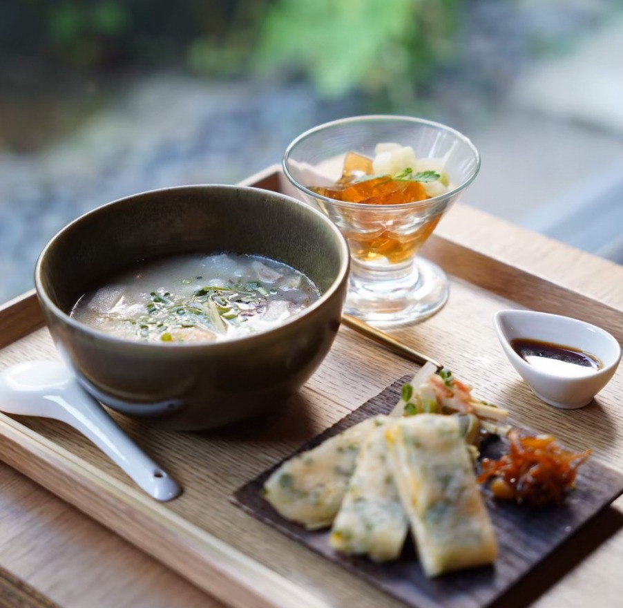A shop that brings the Taiwanese breakfast culture, where it's common to enjoy breakfast at a food stall before heading off to work or school. The shop is located in a renovated building of a long-established oil wholesaler, retaining the charm of a traditional town house with a restaurant area that offers a view of the garden. The weekend-only breakfast menu includes Taiwan porridge, which gently warms the body, and tǐng dòu jiāng (a soy milk and black vinegar soup) that refreshes and rejuvenates.