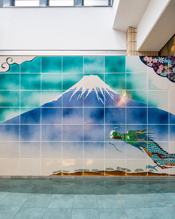 Offers a sauna (paid), is tattoo-friendly, and has striking Kutani-ware tile décor.