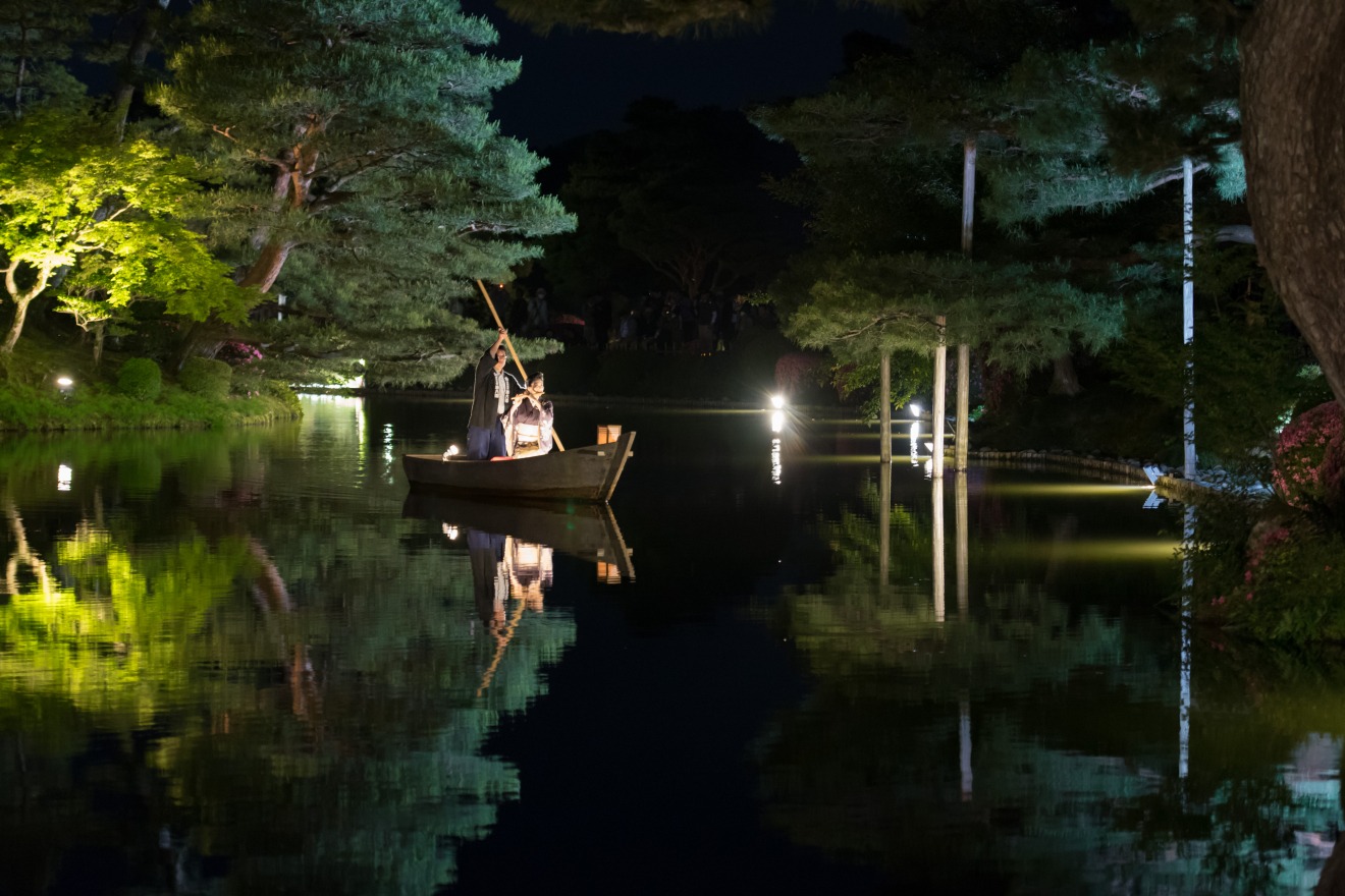 Kenrokuen Garden is located in the heart of the city, but has abundant greenery and clean water from the Tatsumi Irrigation Canal, making it a great place to view genji and heike fireflies.