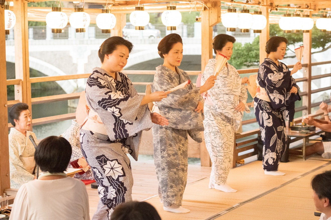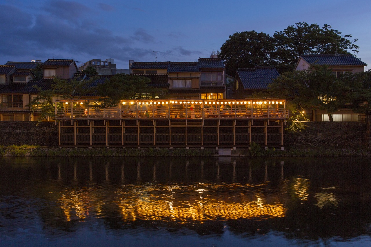 Enjoy the hospitality of Kanazawa geiko and Kaga cuisine on the riverside terrace of Asano river.