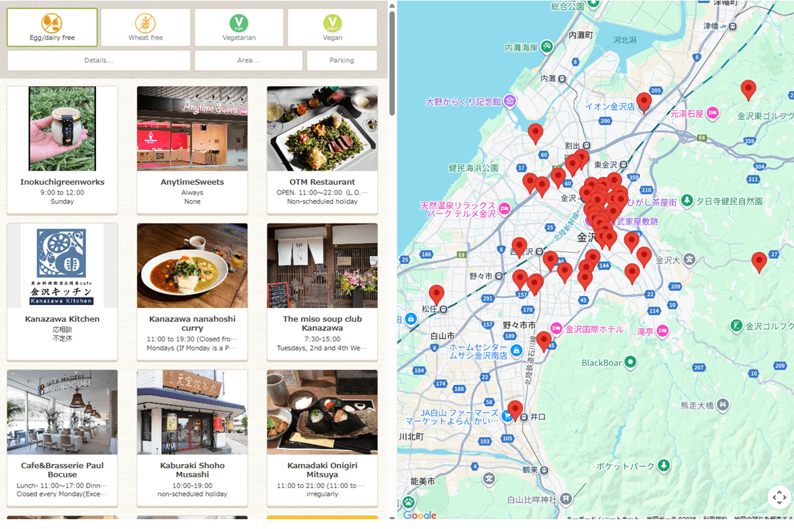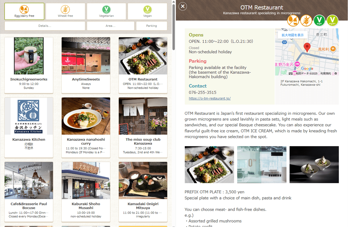 This digital map helps people with allergies, vegetarians, and vegans find suitable restaurants.