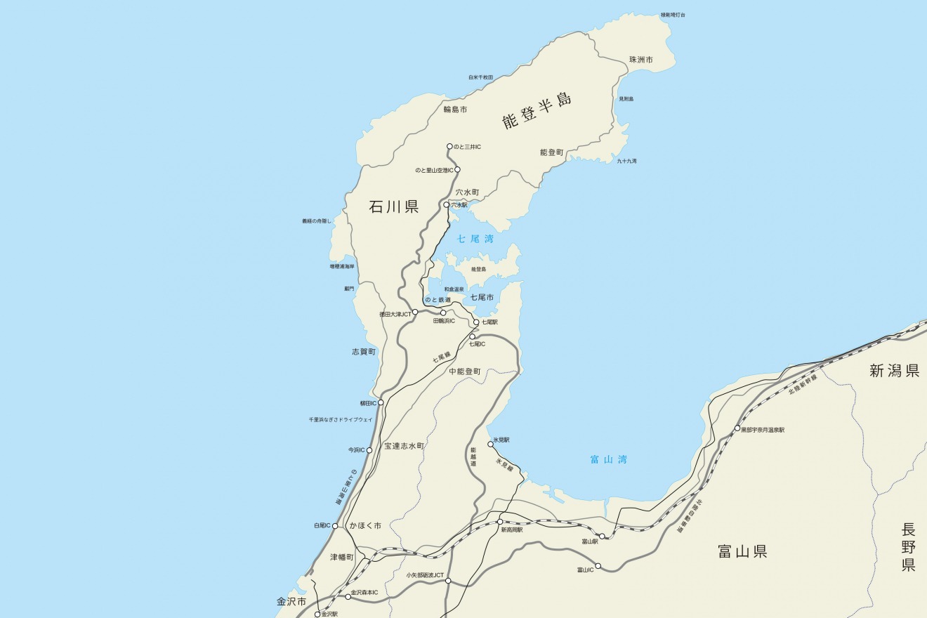 The Noto Peninsula stretches about 110 kilometers in a straight line from Kanazawa City to its tip, making it the largest peninsula on the Sea of Japan side. The areas that suffered the most severe damage from the earthquake were in the Oku-Noto Northernmost region, including Wajima City, Suzu City, Anamizu Town, and Noto Town. Nanao City and Shika Town were also significantly affected, but recovery efforts there are progressing more quickly compared to Oku-Noto.