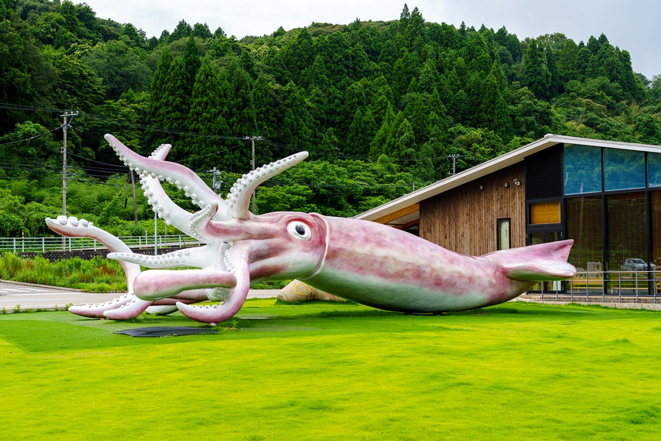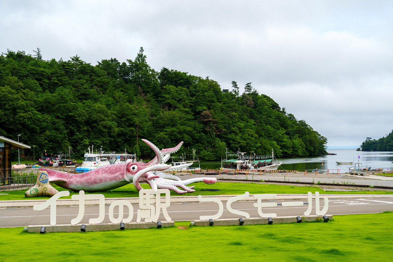 You can enjoy delicious local specialties—including squid, the area’s pride—while taking in the beautiful views of Tsukumo Bay. The iconic "Ika King" (Squid King) statue is a popular photo spot. The sightseeing boats have reopened, but marine leisure activities are closed.