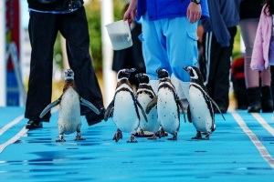 Notojima Aquarium evacuated animals that could no longer be safely cared for due to equipment malfunctions, sending them to aquariums and zoos across Japan. With repairs now completed, the animals that have returned are showing their lively selves once again in Noto. The photo shows the popular "Penguin Walk Time".