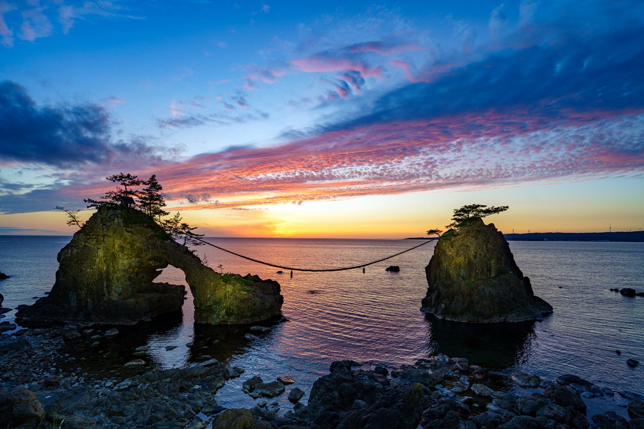 Another iconic landscape representing Noto Kongo Coast. The two rocks are positioned close together, earning them the nickname "Wedded Rocks". There was no significant impact from the earthquake.