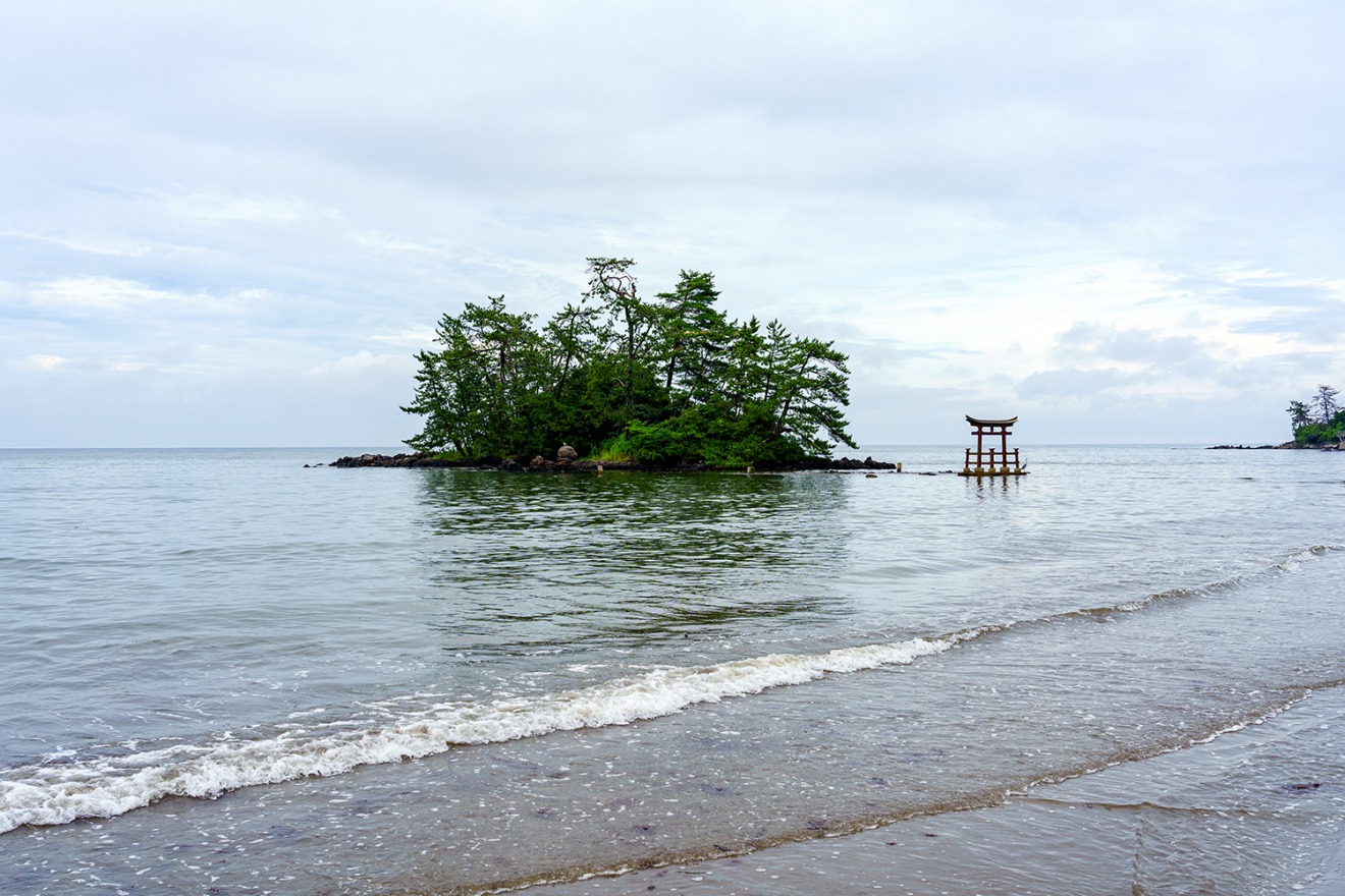 A peaceful sandy beach and the striking red torii gate on Benten Island create a memorable view. The area is named "Koiji", meaning "lover’s path", after a local legend of a tragic love story.
