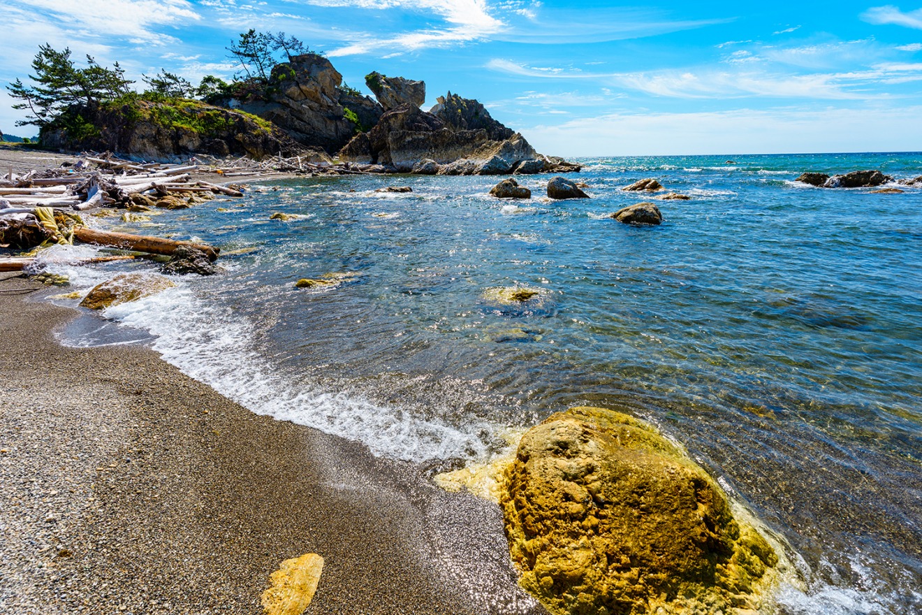 The approximately 4 km long coastline is considered one of Japan’s top three small shell beaches, where visitors can find various small and beautiful seashells, including the Sakura shell. The beach also features the "World's Longest Bench" and a campground.