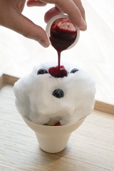 우리는 히라미유키 농장(노토마치)에서 재배한 블루베리를 사용한 파르페와 하이디 와이너리(와지마시)에서 생산한 와인을 제공합니다.
