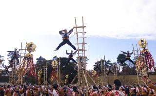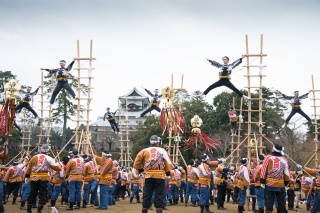 The Kaga-tobi were a group of elite firefighters during the Edo period. Their legend is borne into the present day by the Kanazawa firefighters. Every year to celebrate the new year, the city's firefighters put on a show of acrobatic stunts performed on forty-plus tall ladders with a stunning finale wherein they unleash a torrent of water into the air using firehoses.