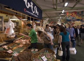 A fresh fish market where you can find fresh fish and shellfish landed at ports near Kanazawa. You can purchase seasonal seafood, consisting mainly of selected local fish such as kanou-gani and zuwai-gani snow crab, blackthroat seaperch, rock oysters, yellowtail, and sweet shrimp. If you want to buy fresh fish, going first thing in the morning is recommend. You can also buy overnight dried-salted local fish and Hokuriku seafood delicacies.