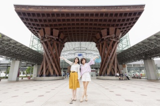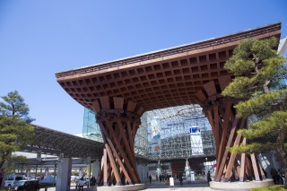 Un lieu très apprécié pour prendre des photos est la majestueuse Porte « Tsuzumi-mon », inspirée des tambours tsuzumi utilisés dans le théâtre Nô traditionnel de Kanazawa. Avec une hauteur de 13,7 mètres et une structure soutenue par deux solides piliers, cette porte impressionne par sa grandeur. De nombreux touristes s'arrêtent ici pour prendre des photos souvenirs. La gare de Kanazawa est même reconnue comme l'une des 14 plus belles gares au monde.